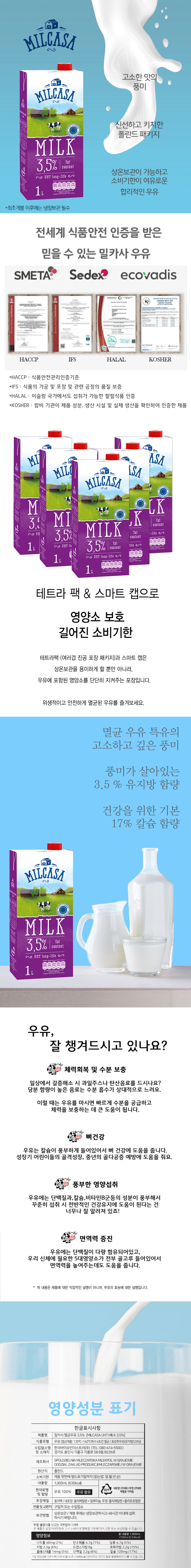 [6개입/무료배송] 밀카사 멸균우유 3.5%